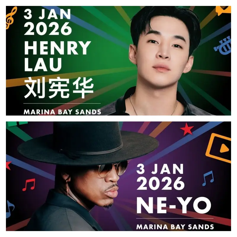 Time | 31 December: Rain – 9:30 PM 2 January: Terry Lin – 8:30 PM 3 January: Henry Lau – 5:00 PM & Ne-Yo – 9:00 PM |